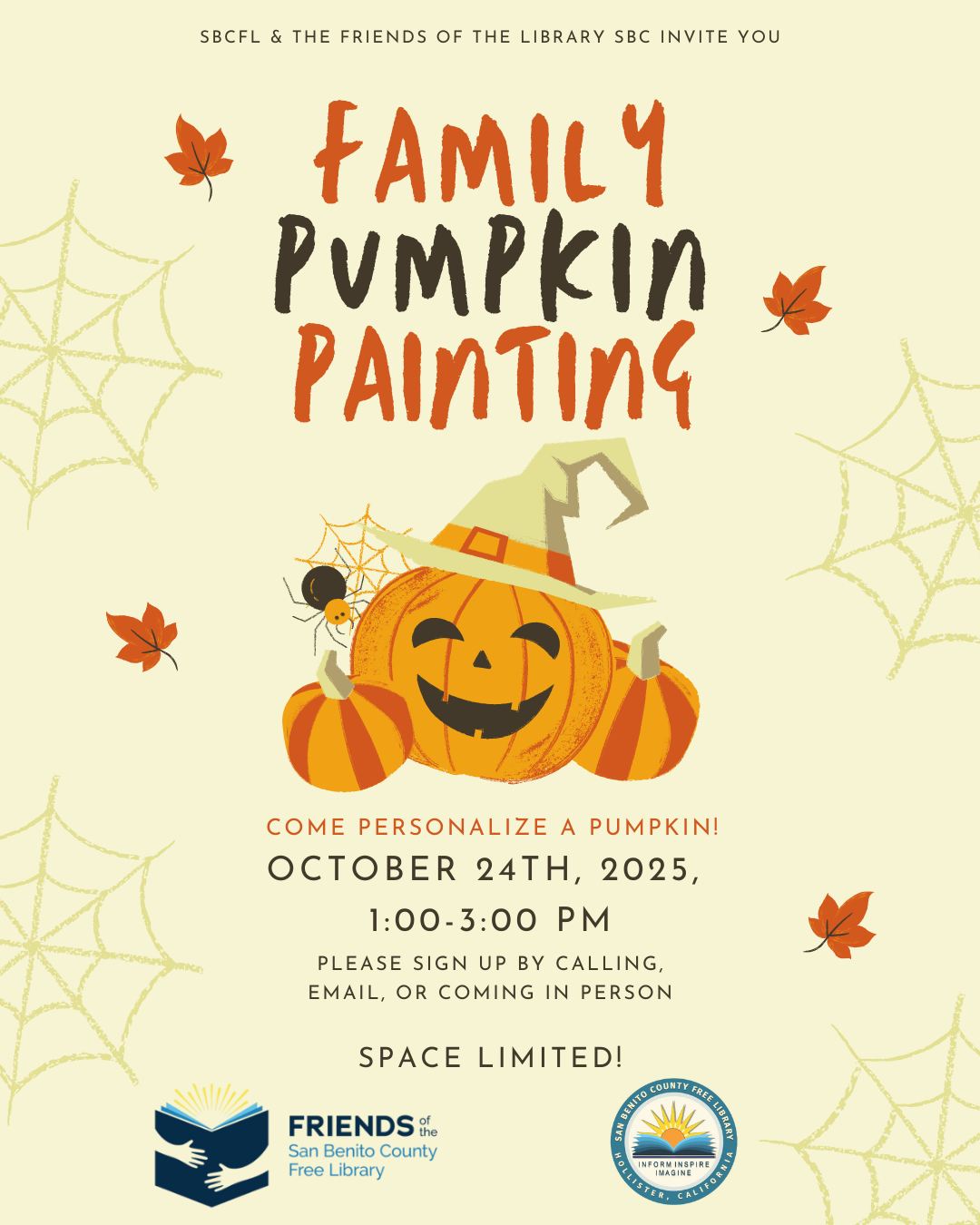 🎃Family Pumpkin Painting at the Library on Oct. 24th @ 1pm🎨