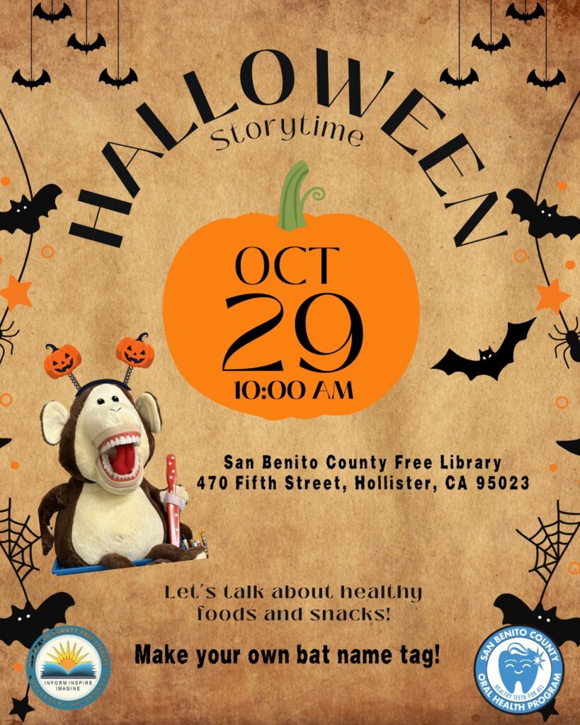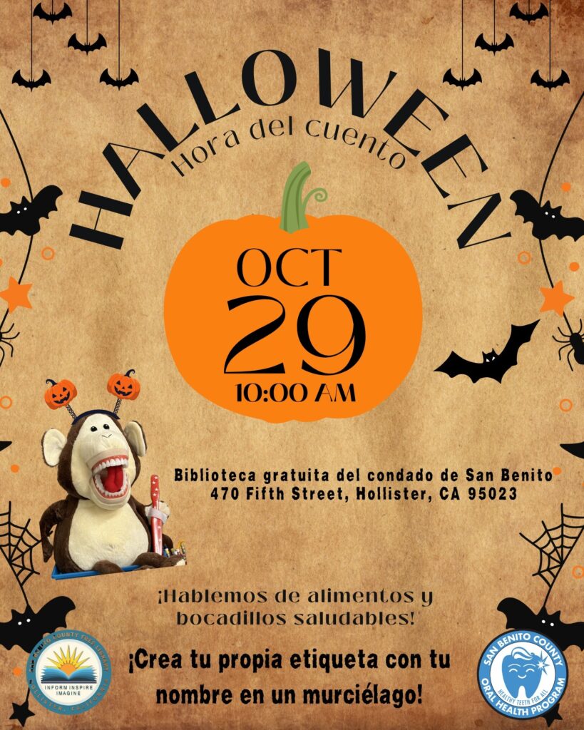 ¡Acompáñanos a una divertida y educativa hora de cuentos sobre la higiene dental, con Monty el mono disfrazado y @publichealthsbc!