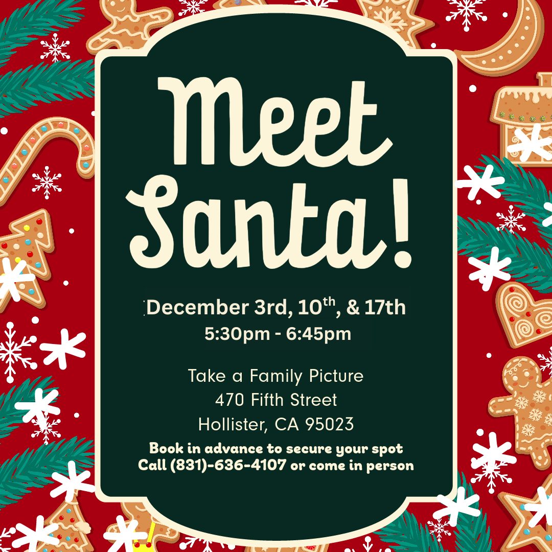 🎅Take Pictures with Santa on December 3rd, 10th, & 17th!📷️ By Jean Luc Miranda | December 1, 2025 - 4:21 PM |December 1, 2025 Children Services, Community, News, Services, Upcoming, Upcoming Events This week, Santa is coming to the San Benito County Free Library! Come take a picture with Santa on December 3rd, from 5:30pm-6:45pm. Book in advance to secure your spot! Give us a call at (831) 636-4107, email us at: library@sanbenitocountyca.gov, or come in person to sign up! Bookmark the permalink.