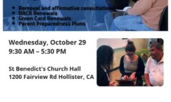 Free Immigration Clinic in Hollister! Join Catholic Charities for a free Immigration Clinic on Wednesday, October 29, from 9:30 AM to 5:30 PM at St. Benedict’s Church Hall (1200 Fairview Rd, Hollister, CA). Services include: Immigration consultations DACA renewals Green Card renewals Family Preparedness Plans Walk-ins are welcome, but appointments… Continue reading